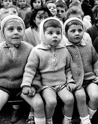 So here are some more images of children as audience members fully caught up in what they are watching. What's interesting is that most of these are of puppet shows or plays or parades. The only one of kids watching movies is the one above and that picture was taken in 1946. It's strange that, for the most part, pictures that I came across of groups of kids watching movies or tv were so different from these - there wasn't the same array of expressions and reactions. And the pictures of audiences in 3D glasses? Really kind of strange how uniform in expression they are (creepy even, if you ask me). Anyway, these old black and whites seem reason enough to go see more live stuff with my nephew or any of my friends' children - I cannot get enough of these expressive little faces.